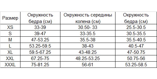 Внимание: измерение окружностей должны быть сделаны выше центра колена на 15 см в центре колена и ниже центра колена. Измерения проводятся стоя.
